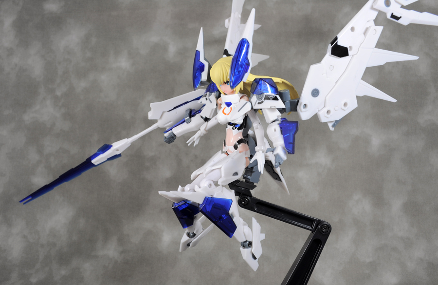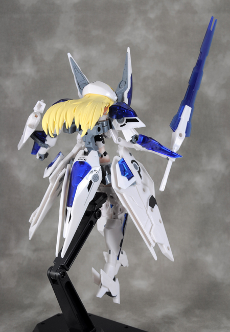 もう一つの作例。スカートを組み替えて羽根のような形にし、武装の肩の部分に付けます。