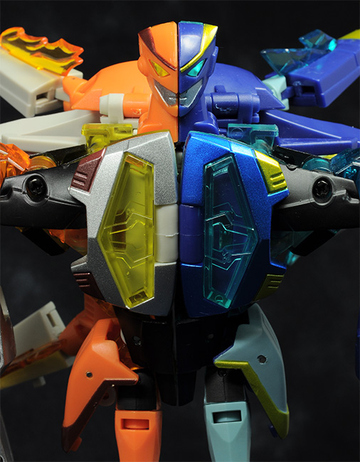 氷(?)と炎の装飾と頭部、それと合体機構が違うだけで同じです。